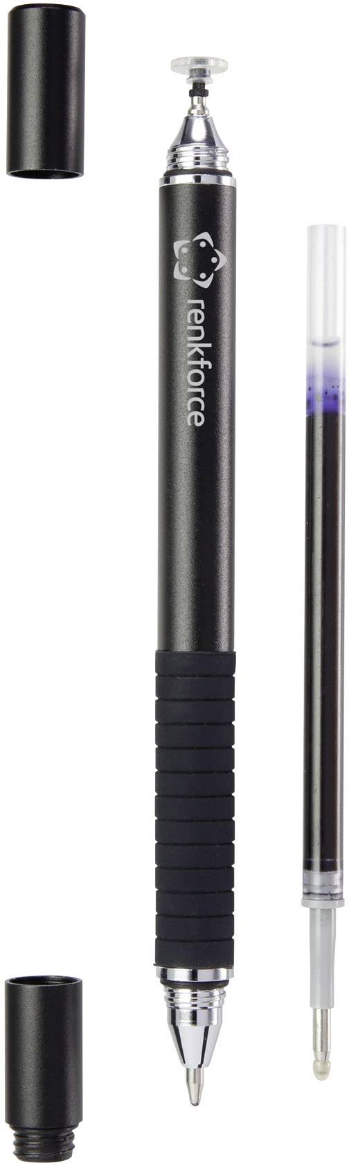 Stylet Renkforce RF-STYLUS-2IN1PEN-FCLIP Pointe métallique tressée avec stylo, avec pointe d'écriture précise noir